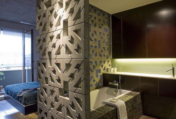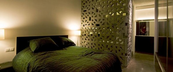 A private master bedroom and bath is concealed from the main live-work space by a full-height sliding pocket door. The bedroom and bath area are separated by a perforated concrete masonry wall produced from geometrically- shaped parking blocks allowing light and ventilation to penetrate the bathing area. Radiant heating through a raised floor slab and adds substantial thermal comfort. Custom concrete counter tops were constructed on site. This takes DIY to a new level, only if you dare. The end result being, something well though out and to be proud of.