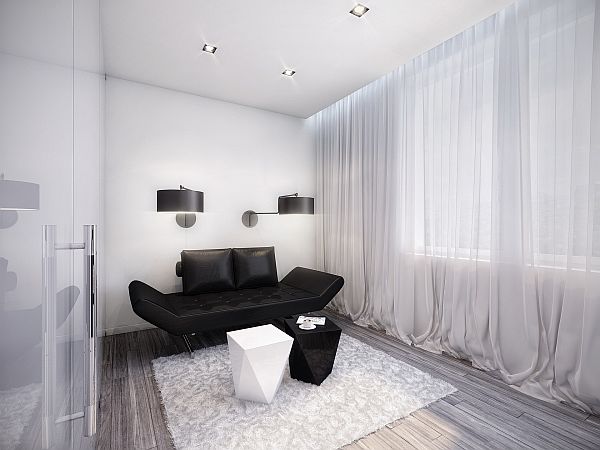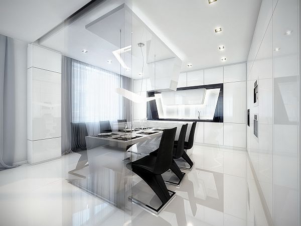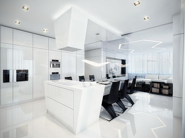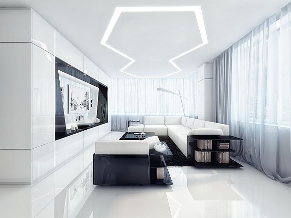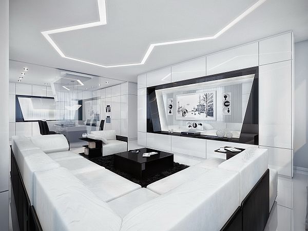 The whiteness of the environment is in perfect contrast with the black spots, providing an elegant air that is intriguing in its perfection. This futuristic ambient with all sorts of modern devices, with elegant curtains that give personality to the rooms, with modern lamps of different shapes, with modern furniture of the highest quality ensures comfort and self-confidence. Such spaces are for a well-defined category of people, those who can afford what seems to be the definition of luxury. Designed by Geometrix, they are the best proof that dreams come true; the smart examples in the pictures stand for the concept of ideal place.