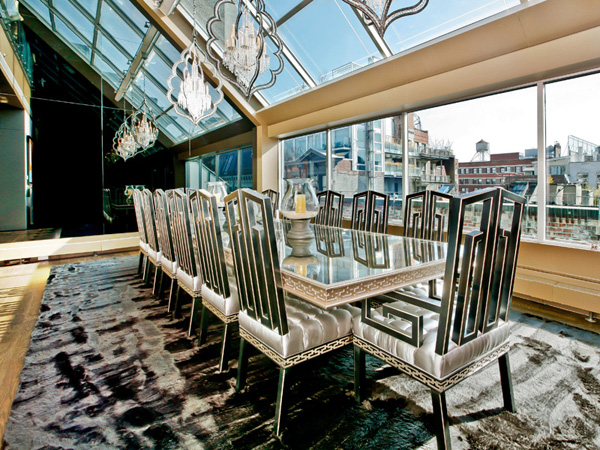 Today’s find is a luxurious 6167 sf triplex Penthouse with an additional 3000 sf of enchanting terraces in Soho’s most sought after full service pre-war Condo. Enter via keyed elevator to either floor; this magnificent sun filled loft has 5 bedrooms, 4 bathrooms, 4 powder rooms an enormous state-of-the-art windowed gourmet eat-in kitchen, walk-in butler’s pantry, separate formal dining room that faces East encased in a glass solarium, an expansive living room with fireplace, library/media room are all surrounded by undoubtedly one of the most beautiful private terraces in all of Soho. A floating glass staircase leads to a separate private master suite complete with spa, pass through dressing area & private terrace. Creston automated entertainment system unifying the audio/video into an exhilarating experience including the latest security systems. Reconfiguring is simple as there are no load bearing walls. Separate/private storage/dressing room and Wine Cellar.