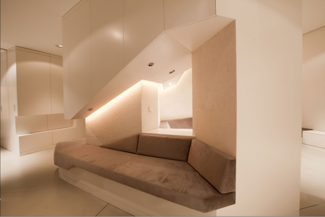 Nothing says ‘this room is special’ like setting it apart both in terms of material choice and physical space. For residents of this ultra-modern loft, it is clear that the kitchen is the top priority; it is the core area around which the rest of the layout (also be the designers of GraftLab) revolves.
