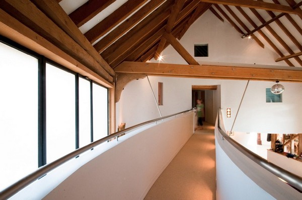 The current design is mostly characterized by openness and space. There’s an open plan living room and a suspended walkway that connects all the other rooms. The main bedroom is situated upstairs and it overlooks the church where the owners got married. It’s a very romantic view and the church is a permanent reminder of what was probably the happiest day of their life.