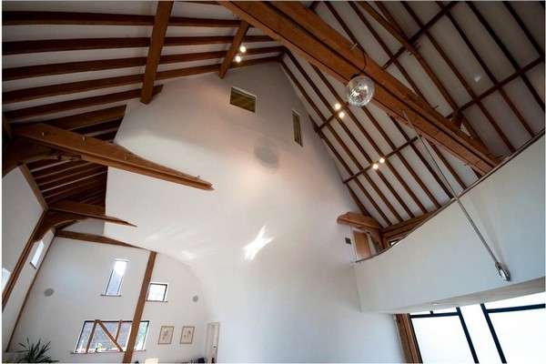 Upstairs, the main bedroom overlooks a beautiful landscape and the church where the home owners were married. The budget for the building was approximately 390 000 GBP.