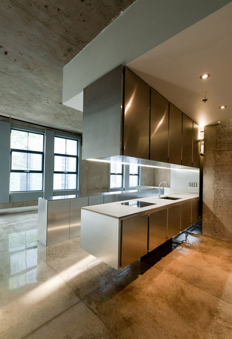 This 4,000 square foot classic loft space tries to maintain the openness, utilitarian and industrial language of its raw brick, wood, and steel elements exposed.