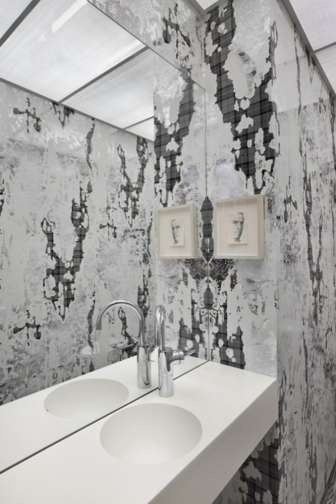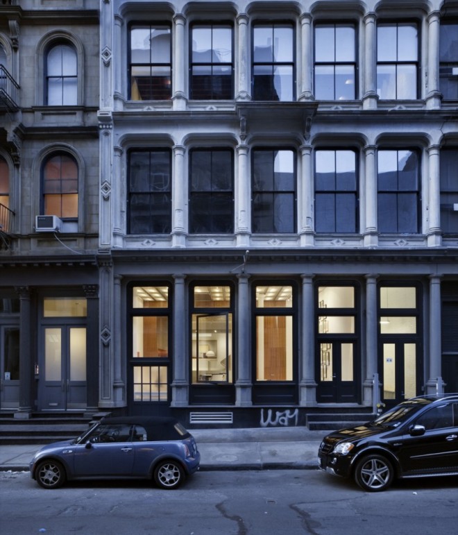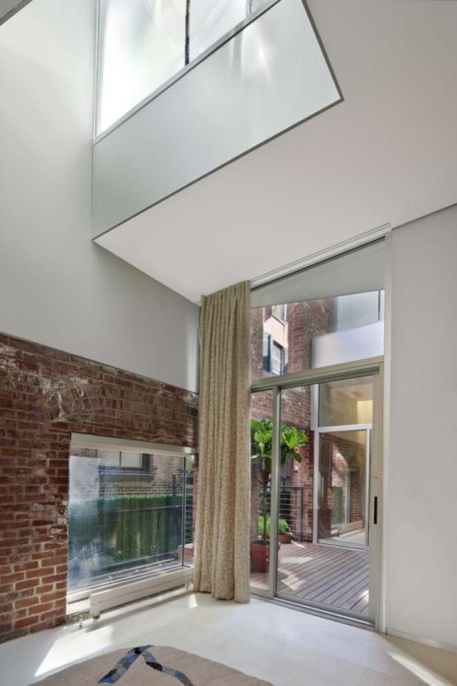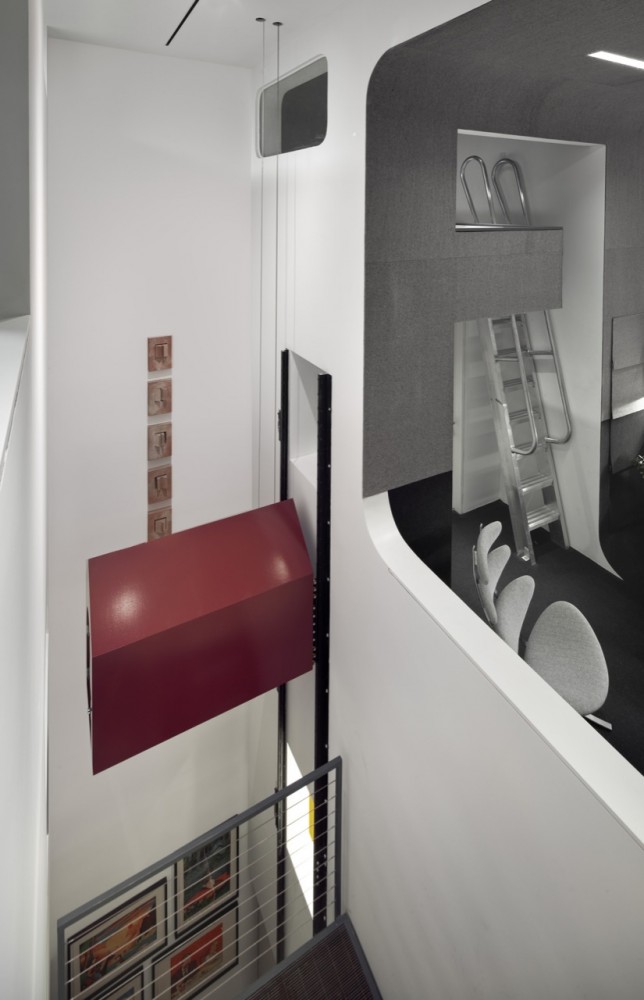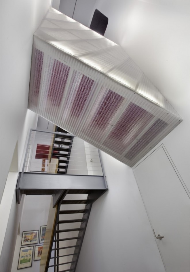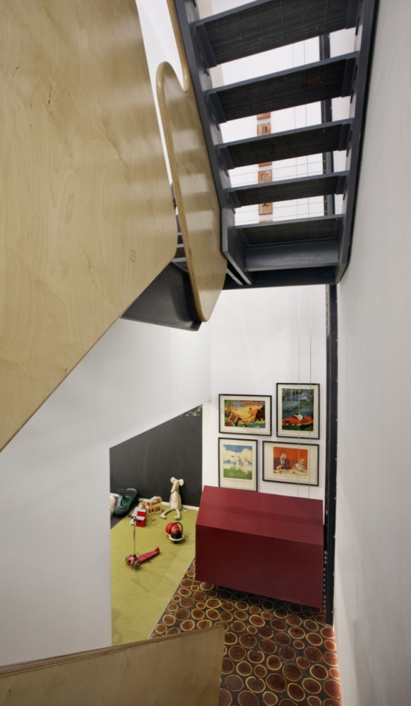 The classic New York minimalist loft was considered too constraining and inflexible. The concept therefore was to divide the space into a series of programmatic “stripes†to accommodate different functions, moods and materials and break down the length of the apartment into a promenade of experiences, from most public at the front to most private in the back. This is combined with a shifting of the rear floors to allow for three full-height levels.