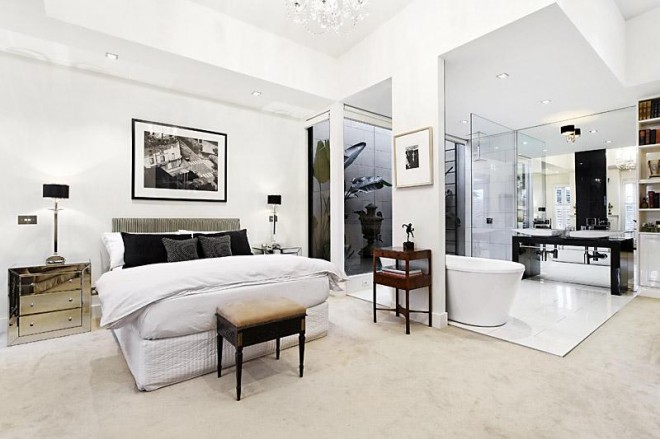 Dark ceilings, lots of marble, very white, very European feel.