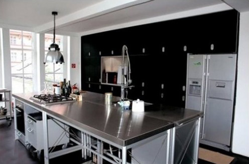 In general in the same house is situated a living room, and kitchen and dining room, space for guests and entertainment zone and art studio of Michael and Ingar. The colors which prevail here are, of course, black and white.