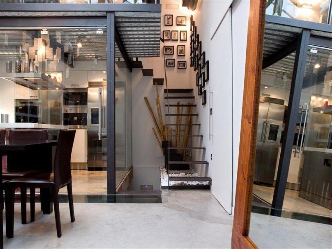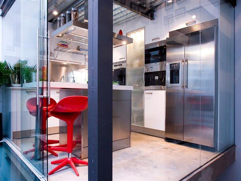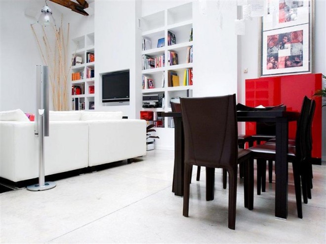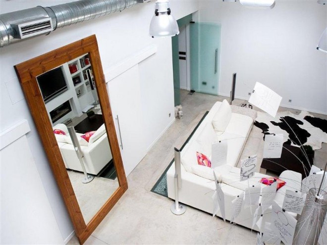 This contemporary loft located in the Salamanca district in Madrid, Spain. The house enjoys a superb natural light through a skylight that is in the living room.