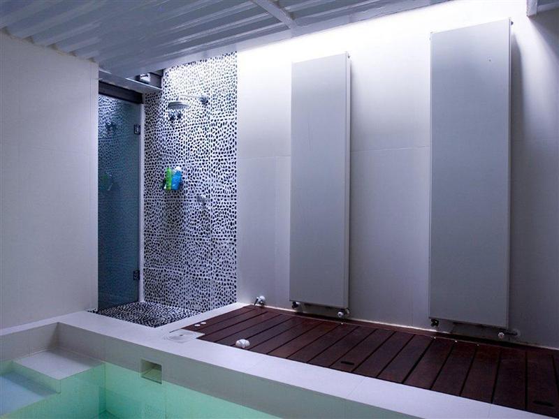 Totaling 227.25 sq. meters this special home is divided into two levels plus a basement where there is a private exercise pool, washer and dryer. The ground floor includes a spacious living-dining room with a kitchen enclosed in glass, a bedroom and a bath. The top level is a spacious open area with the master bedroom and bath.
