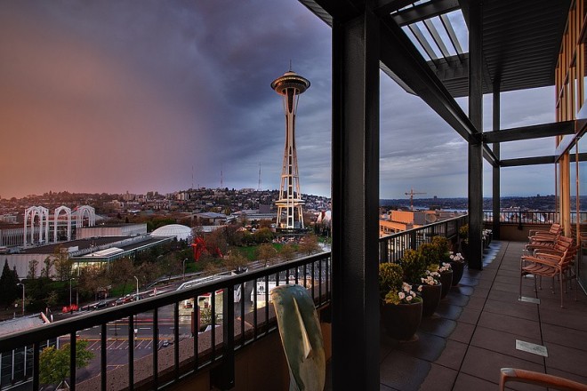 Concrete floors, steel beams & 19′ ceilings, generous master suite, luxury kitchen and on top of that, an amazing 270 degree view of the Iconic Space Needle and blocks from the Seattle Waterfront!