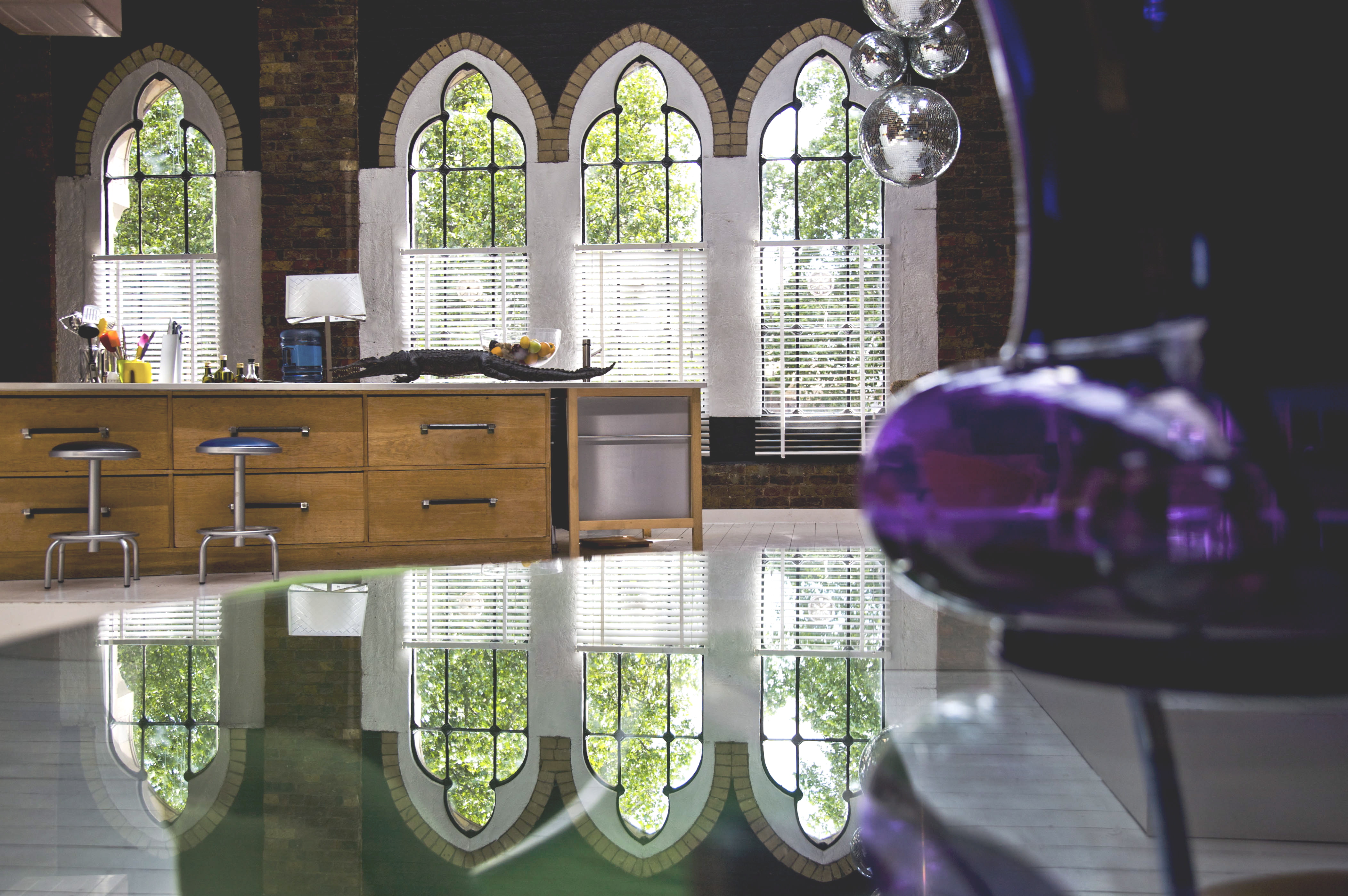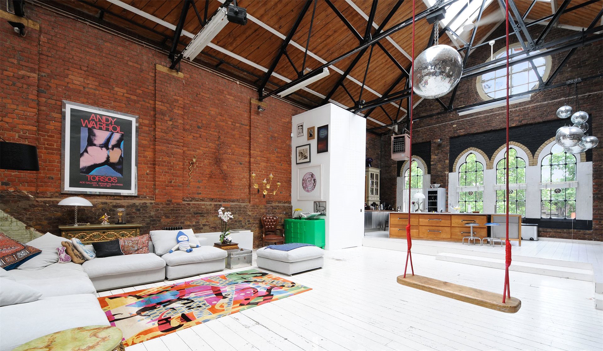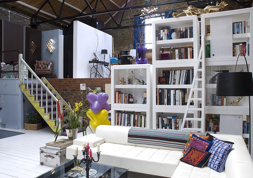 Before moving into his super-sized loft he had lived in a modest one-room apartment or bedsit in Chelsy. The difference could hardly be any greater – before, a small, cramped space, now a huge, two-storey loft in an erstwhile canning factory in London’s East End. Juan Carlos and Chris, a screenwriter friend, initially had to overcome a few difficulties in adapting. “We felt as if we were sleeping in a park or football field, ” says Chris, who felt lost in the vastness of the neo-Gothic building.