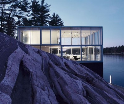 There are so many, many, ways to build a green home. This one, a clear glass cube, is a studio for a photographer. Designed by Toronto-based firm GH3, it sits atop his boathouse on a Canadian lake.