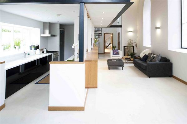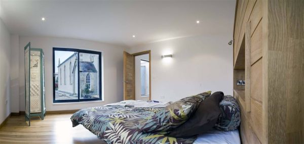 The two buildings are connected by a corridor, known as “The linkâ€. In the middle of the link is a reading area – a window seat with tatami seating and glazed bi-folding doors that look out to a Japanese garden, which has been designed to create a sense of calm. The extension, or sleeping wing, has a bathroom and four bedrooms, three with en-suites. The church building is an open-plan space, housing the lounge, dining room and kitchen. Over the kitchen is a floating studio pod. The oak-clad design is currently used as a work room but could be an extra bedroom. It has a built-in wardrobe, low-voltage spotlights, solid wood-strip floor, a glass panel overlooking the living area, and feature wall lights.