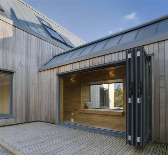 It has been built in a comtemporary barn style clad in cedarwood; it is a very simple style†and a very modern style