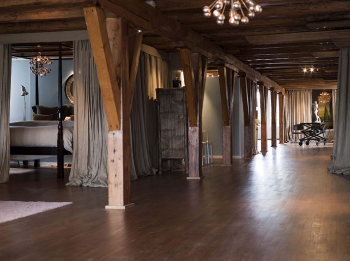 Old vintage furnishings have been selected and some have been modified to compliment the lofts interior design. Two notable furniture pieces of the loft are the Eames molded plywood chairs, 1946 which have been referred to as the “most famous chair of the century,” with a low-slung form that relates directly to the human body and holds no secrets as to how it succeeds technically. Buffets and armoires, bedside tables, and a bed for the royal and the noble; pieces where each and every one of them has a character of its own which speaks of its history and its status.